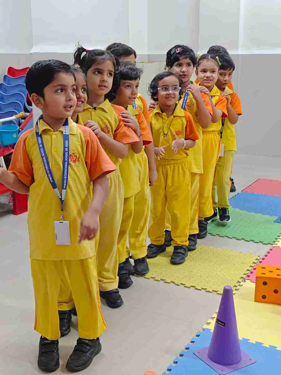 Team spirit and collaboration filled the classrooms of UKG A and B at Sparsh International School during the Circle Time session on the theme “Synergy: Work Together to Be Better.”